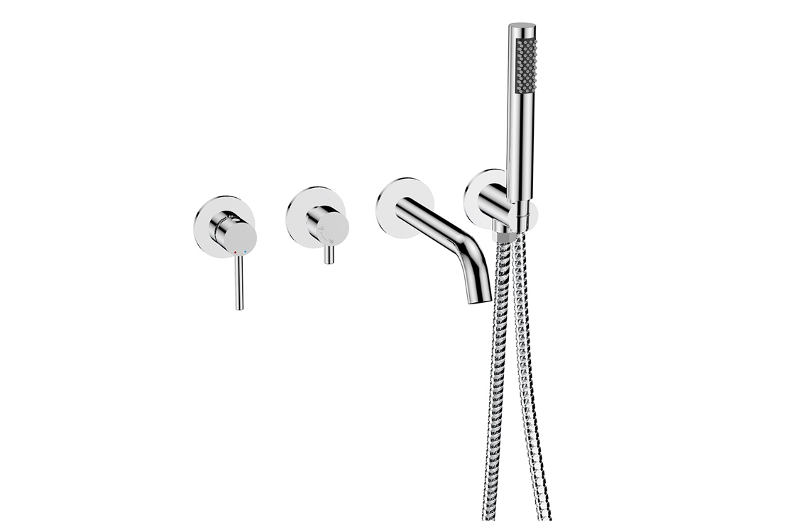 Складається з: верхня частина змішувача, перемикач, вилив для ванни, ручний душ (лійка) з шлангом і тримачем, внутрішня частина.