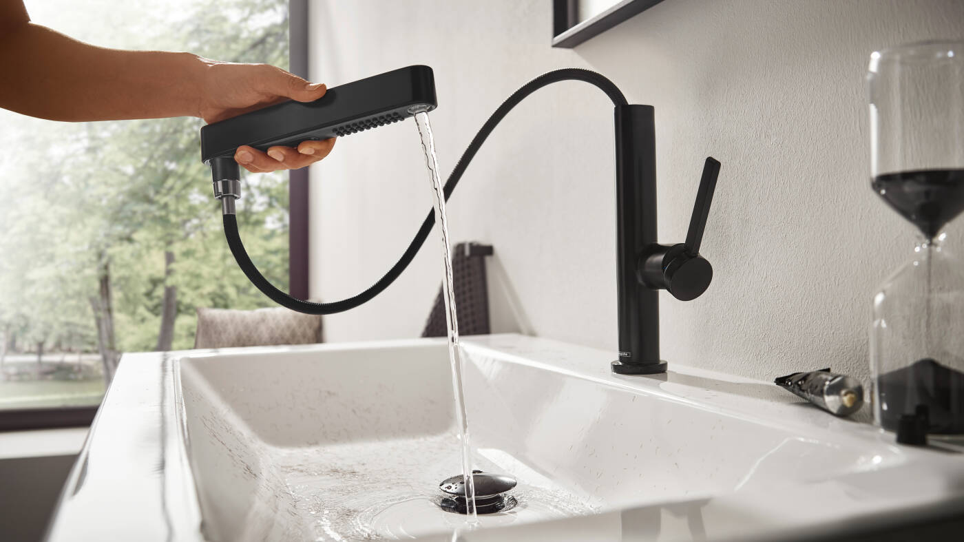 Відгуки про "Змішувач Finoris 230 для умивальника з поворотним висувним носиком 2JET і донним клапаном push-open Matt Black (76063670)"