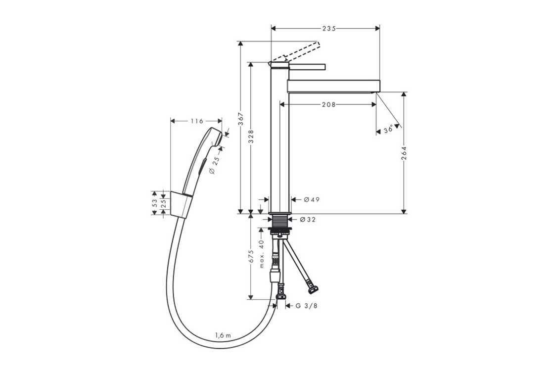 Змішувач Finoris 260 для умивальника з гігієнічної лійкою Chrome (76220000)