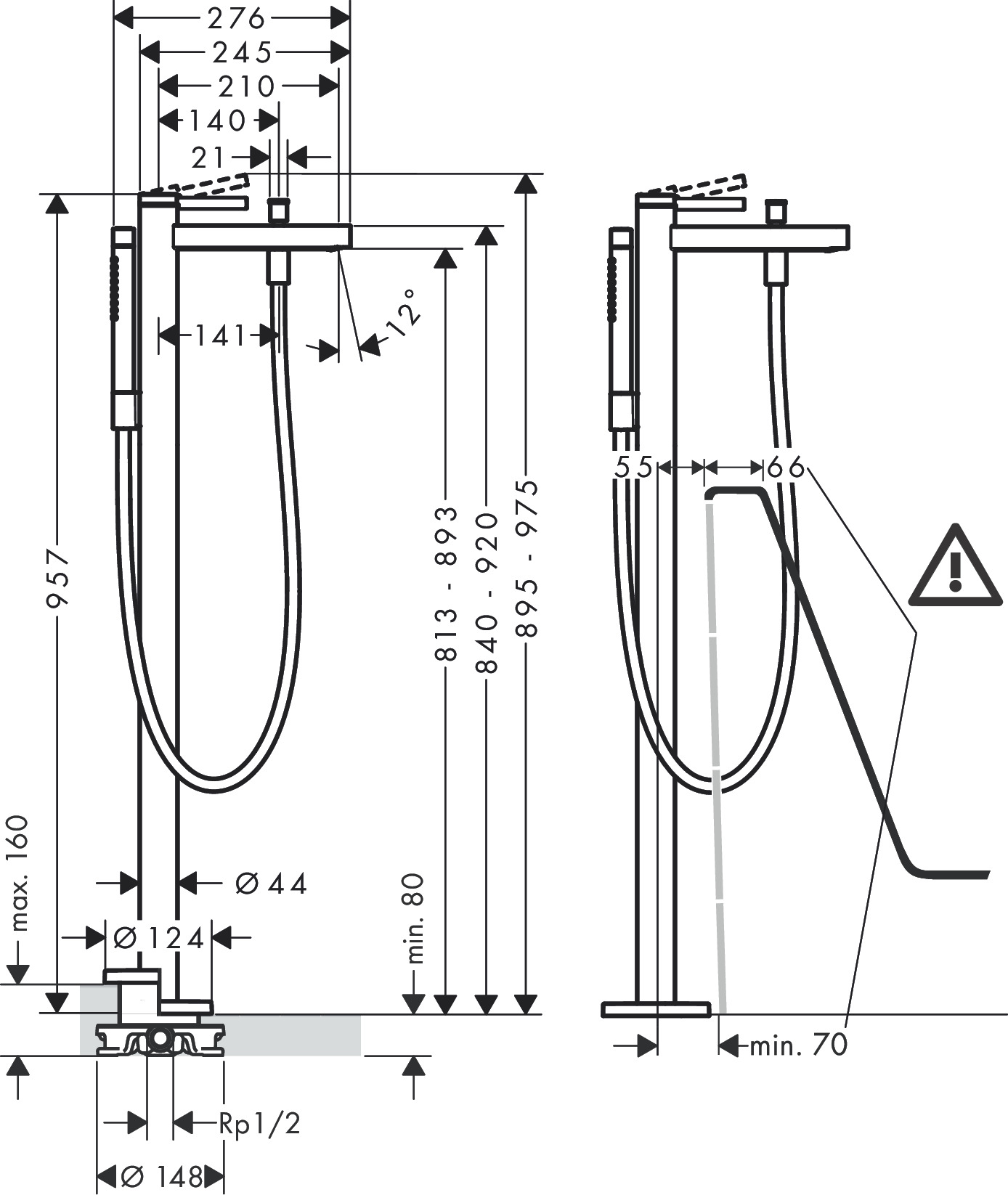 Тип струменя на ванну: ламінарний струмінь. Тип струменя ручного душу: Rain, Mono. Витрата води для ванни при 3 барах: 20,6 л/хв. Витрата води для ручного душу при 3 барах: 25,6 л/хв.