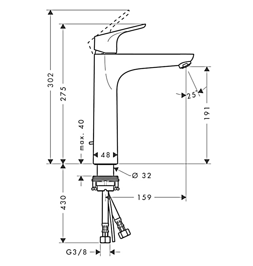 Змішувач Focus 190 для умивальника з донним клапаном (31608000)