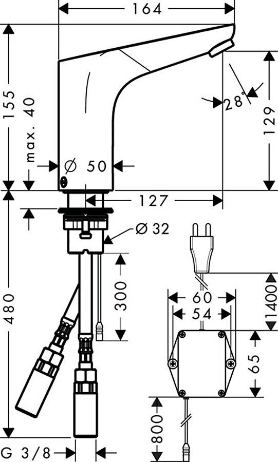 Змішувач Focus сенсорний для умивальника 230 V, без регулювання температури (31174000)