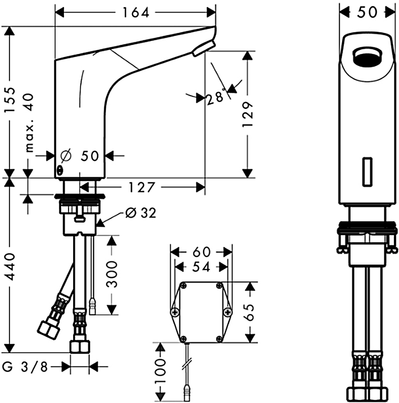 ComfortZone 130,проекція: 127 мм,витрата води при 3 барах: 5 л/хв,підключення до мережі 230 В/50 Гц,аератор зі захистом від крадіжки,функція попереднього регулювання температури від акумулятора (без важеля),інфрачервоний датчик, що спрацьовує на наближення,робота від батареї 6 В (термін служби приблизно 2 роки, батарея входить в комплект поставки),час роботи: 10 с,активація гігієнічного промивання (автоматичний потік води),частота гігієнічних полоскань: 24 год,час промивання гігієнічне полоскання: 10 с,можливість постійного промивання (один потік води протягом 180 секунд, підходить для термічної дезінфекції),фільтри від бруду у з’єднувальних шлангах,режим очищення: ручна зупинка води для очищення умивальника.