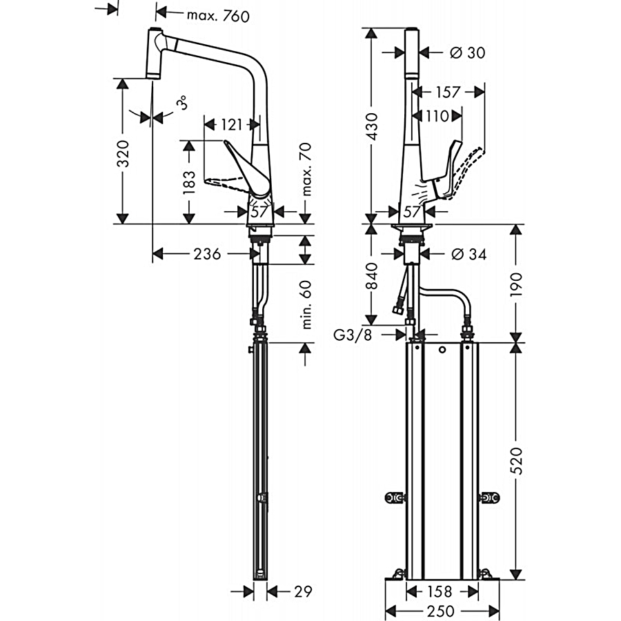 Відгуки про "Змішувач Metris M71 320 2jet кухонний з витяжним виливом Sbox (73801000)"