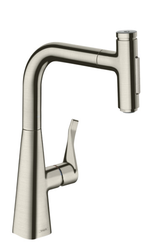 Змішувач Metris Select 240 2jet кухонний з витяжним виливом (73822800) Stainless Steel Finish