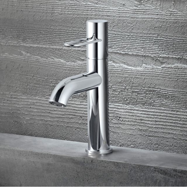 Змішувач одинважільний для раковини AXOR Uno (38021000) з рукояткою-петлею і незапіраемим зливним набором.
