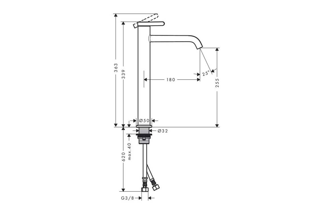 складається з: одноважільного змішувача для умивальника, зливного комплектуComfortZone 260,проекція: 180 мм,висота носика: 255 мм,тип спрею: звичайний спрей,максимальна витрата при 3 барах: 5 л/хв,керамічний картридж,регулюється обмеження температури,підходить для безперервних проточних водонагрівачів,тип з'єднання: з'єднання G ⅜,приєднувальний розмір: DN15.