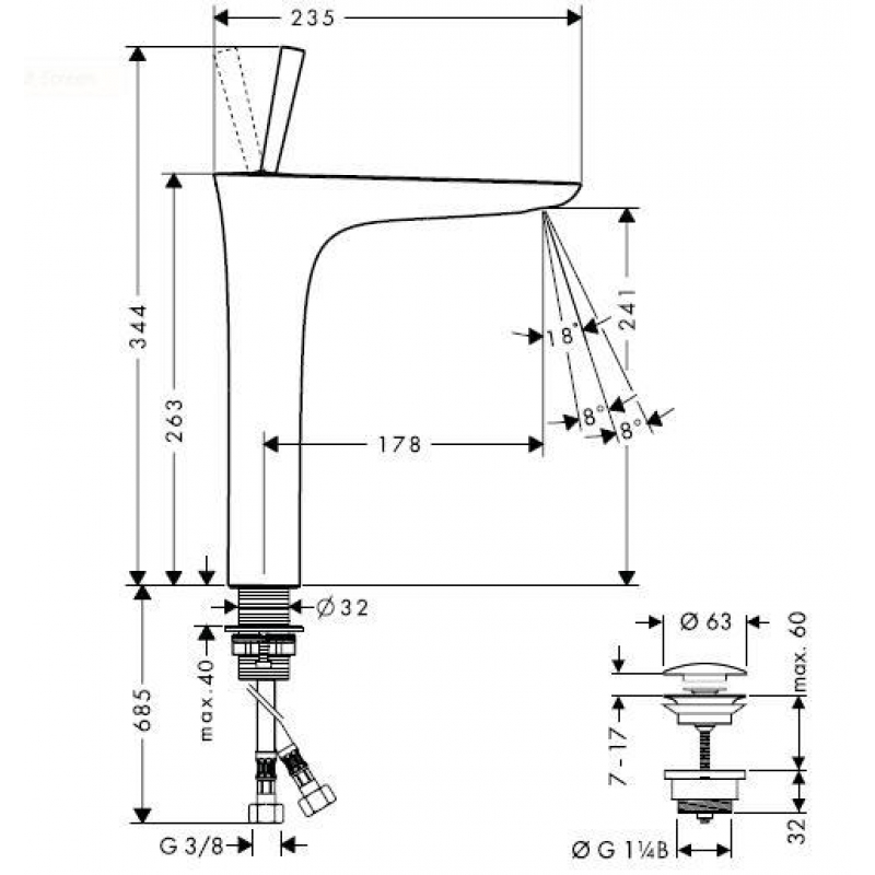 Змішувач PuraVida 240 мм для умивальника, хром (15072000)