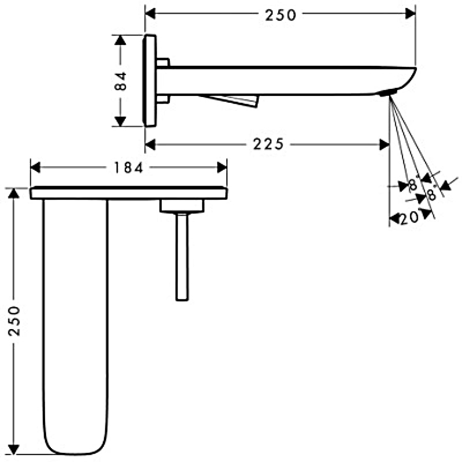 Для монтажу необхідна прихована частина для змішувача зі стіни на раковину, арт. 13622180. Витрата води: 5 л/хв.