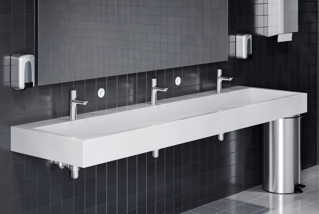 Змішувач для умивальника 110 з порційною подачею води та регулятором температури, без зливного комплектуComfortZone 110,виступ: 111 мм,висота носика: 106 мм,циліндрична ручка,тип спрею: звичайний,максимальна витрата при 3 барах: 5 л/хв,картридж з контролем температури,регульований час подачі води: від 3 до 20 секунд (попередньо встановлено 7 секунд),регулюється обмеження температури,підходить для безперервних проточних водонагрівачів,можлива термічна дезінфекція,тип з'єднання: з'єднання G ⅜,приєднувальний розмір: DN15,для термічної дезінфекції необхідно використовувати сервісний інструмент арт. 93913000.