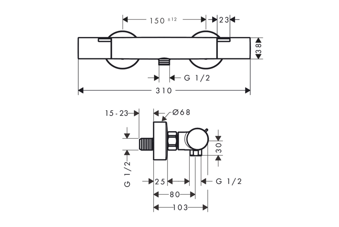 1 функція;контроль температури води;можливість термічної дезінфекції;Water Flow Control контроль витрати води - кількість води можна точно відрегулювати за допомогою регулятора;кнопка EcoStop+ використання води регулюється максимум до 6 л/хв;SafetyStop безпечна зупинка при 40 °C;регулюється обмеження температури;зворотний клапан;матеріал ручок: метал;міжцентрова відстань: 150 ± 12 мм;приєднувальний розмір: DN15;тип з'єднання: s-подібні з'єднання, G ½;фільтр бруду в комплекті