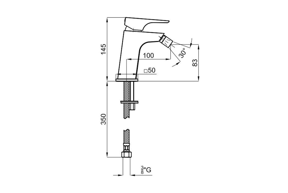 ACRO COMPACT Змішувач для біде з аератором, керамічний картридж d25 мм, підключення 3/8", хром (100313212)