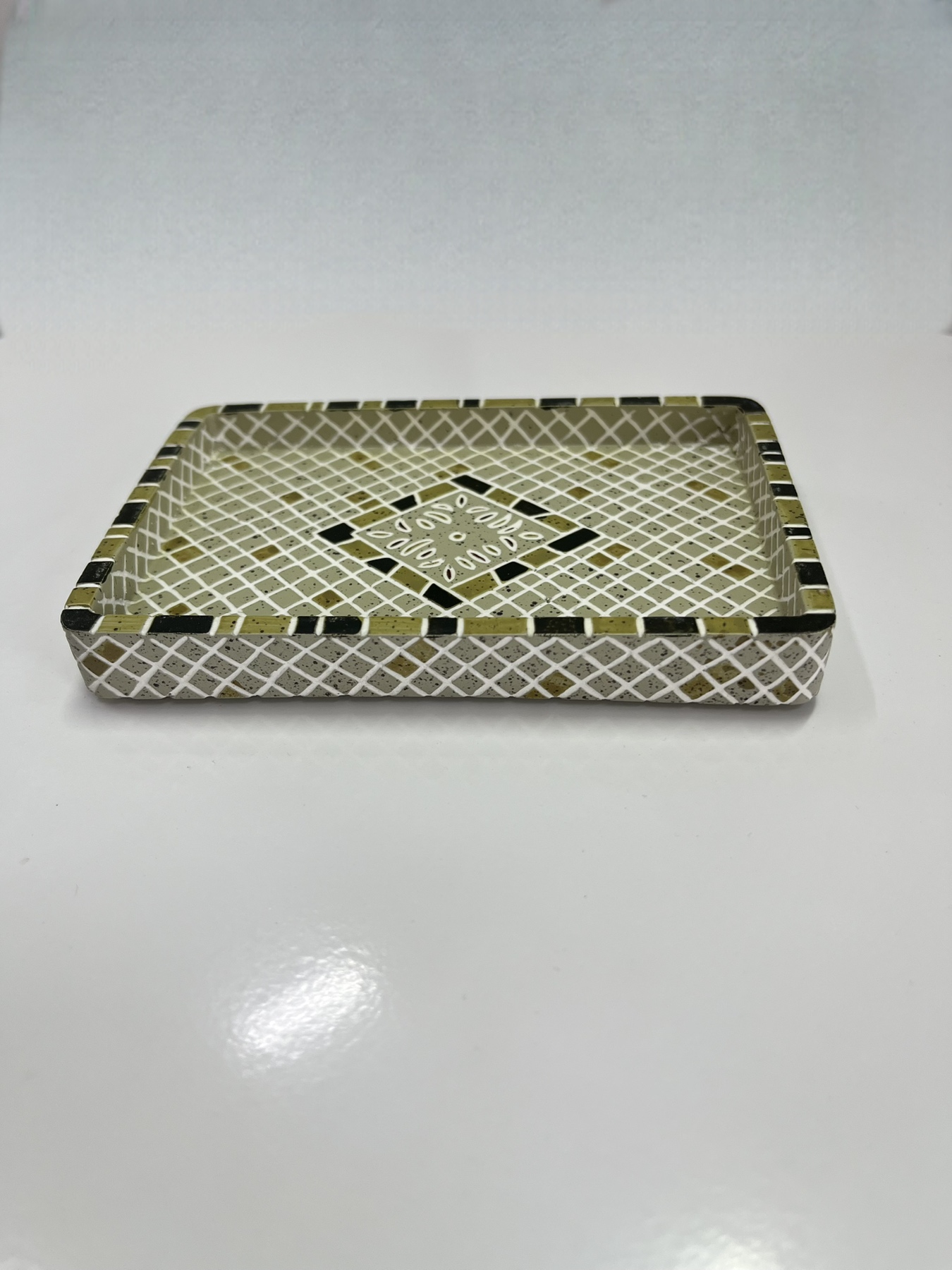 Мильниця BISK Livorno Green – стильний аксесуар для ванної кімнати з вишуканим дизайном. Виготовлена з якісного матеріалу, вона має оригінальний візерунок у поєднанні зелених і золотистих відтінків. Завдяки стійкості до вологи та легкому догляду забезпечує практичність і довговічність. Ідеальне доповнення до елегантного інтер’єру.