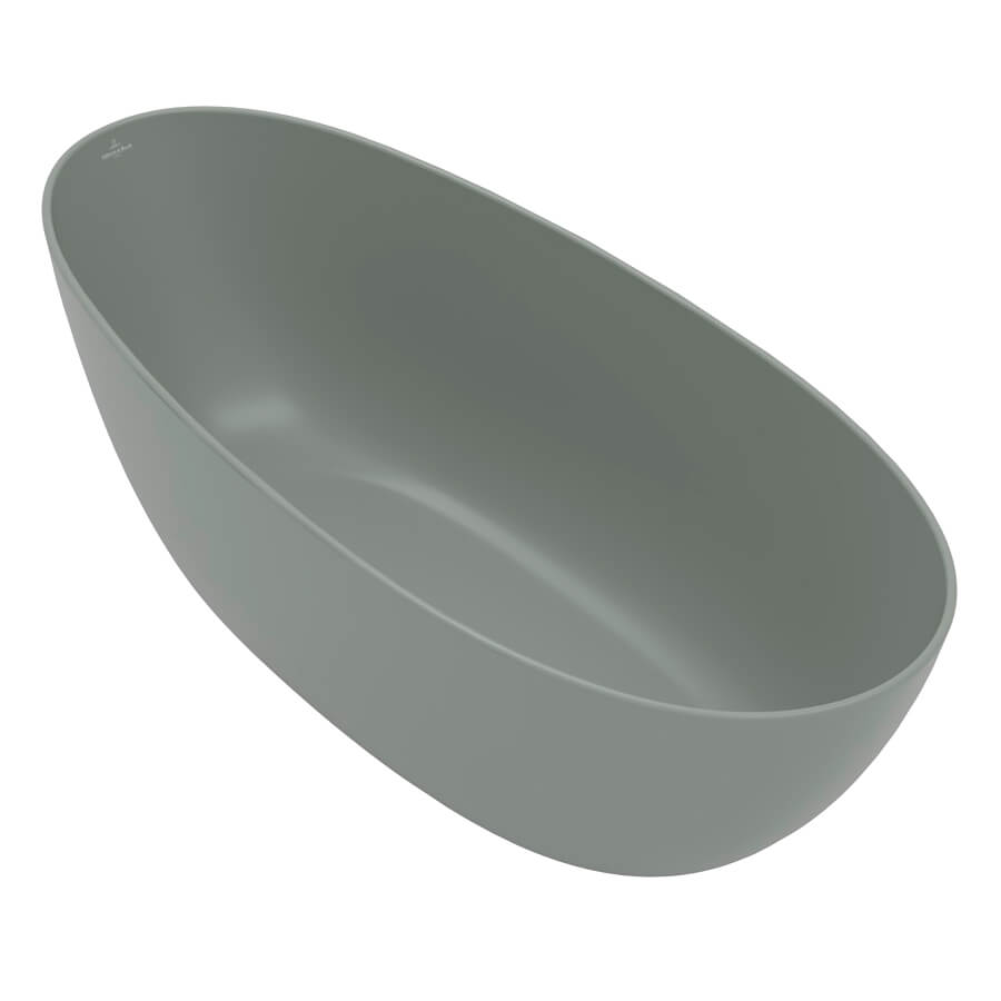 Ванна овальна вільностояча в кольорі Morning Green (зелений), вага 63 кг. Виготовлена зі стійкої до ударів і подряпин кварц-акрилової суміші з приємною гладкою поверхнею (Quaryl®). 2 похилі спинки створюють зручне місце для сидіння. Отвір для зливу розміщено посередині, без переливу. Об'єм 212 л.