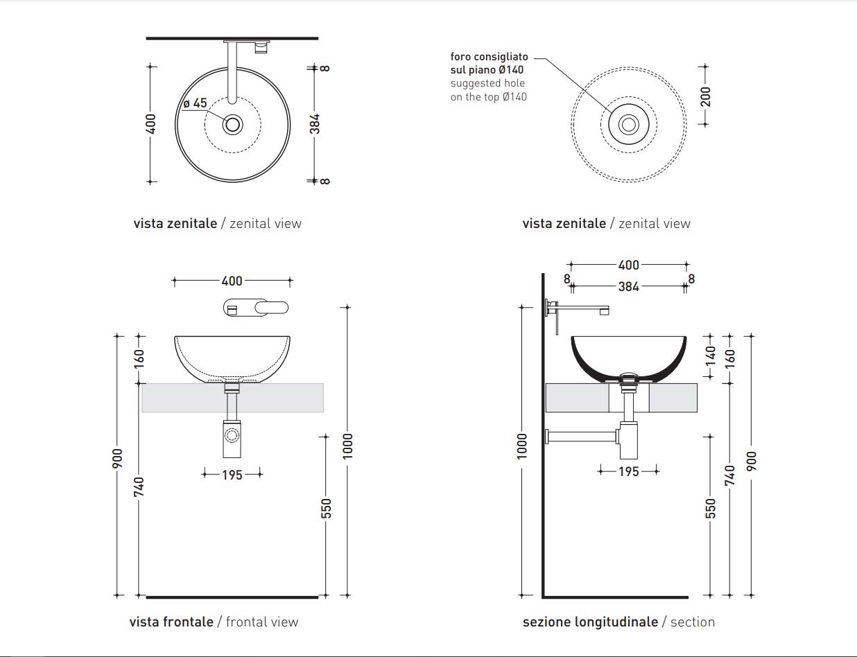 APP Умивальник 40 круглий, Nuvola (AP40A)