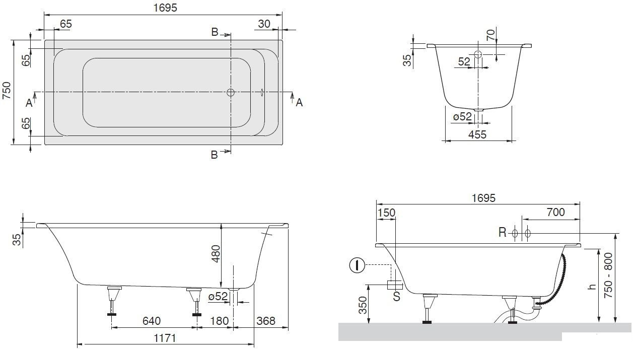 Відгуки про "ARCHITECTURA Ванна 1700x750 Solo акрил (UBA170ARA2V-01)"