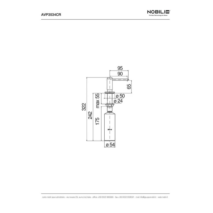 AVP3534CR Дозатор для рідкого мила 300мл вбудовуваний хром Nobili ІТАЛІЯ