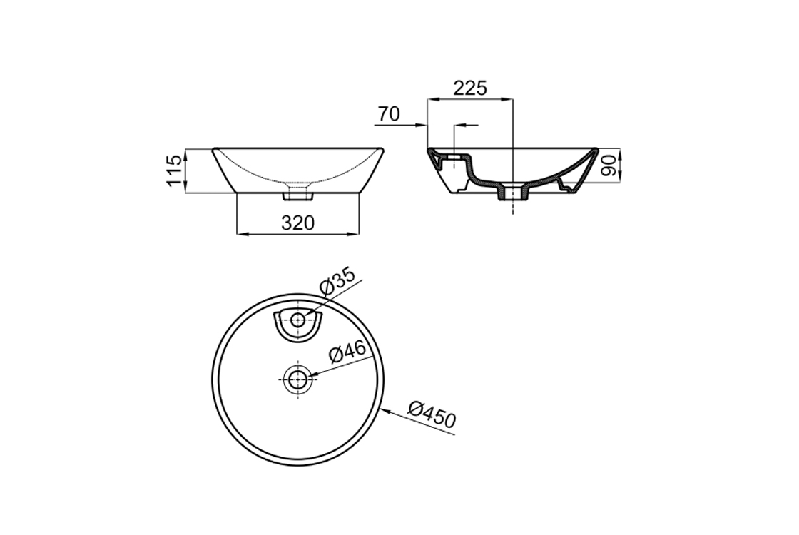 CLIFF Умивальник на стільницю 45 см, без переливу, білий (100313310)