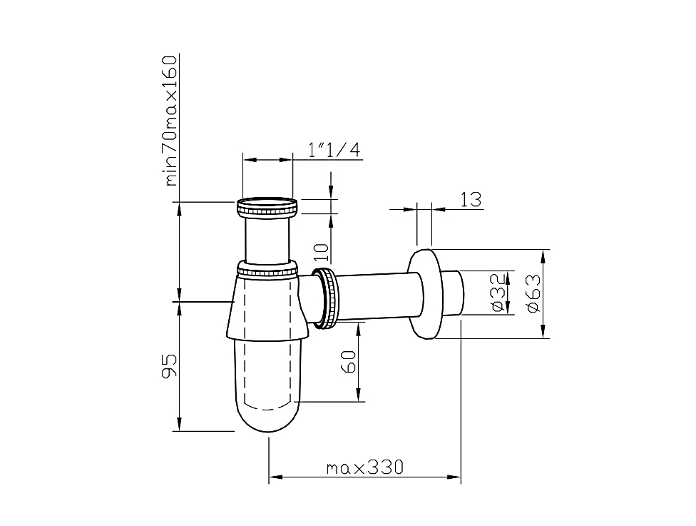 COMPLEMENTOS Сифон для умивальника d32 мм, хромований (100039181)
