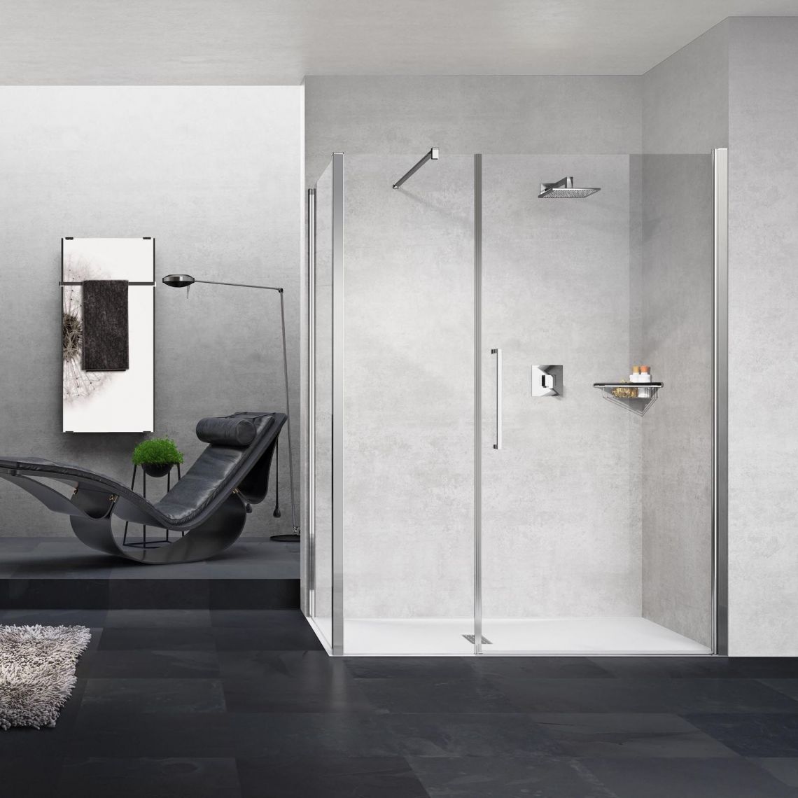 Особливості душової кабіни кутовий Novellini Young, двері + бічна панель, 120х90, скло-Clear, профіль-хром (Y2GFL117-1K + Y2F1B89-1K):