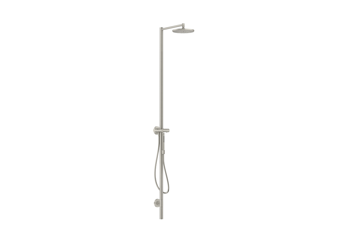 Axor Душова колона AXOR Starck з термостатом і верхнім душем 240 1jet, колір Stainless Steel Optic (нержавіюча сталь) (12672800)складається з: душової стійки, верхнього душу, ручного душу, термостата, душового шланга,розмір душової лійки: 240 мм,верхній душ 240 1jet,тип розпилення: PowderRain, ручний душ типу розпилення: Rain, Mono,витрата розпилювача PowderRain (при 3 бар): 11,3 л/хв,витрата ручного душу при 3 барах: 12,2 л/хв,максимальна витрата при 1 бар: 5,5 л/хв, при 3 барах: 12,2 л/хв,макс. робочий тиск: 10 бар,захист від опіків: при 40 °C,обмеження гарячої води,виходи, керовані за допомогою поворотної ручки,підходить для безперервних проточних водонагрівачів,монтаж: настінний,приєднувальний розмір: DN15,зворотний клапан,2 функції,необхідне додаткове обладнання: прихована частина для змішувача зі стіни (арт.10902180) (не входить в комплект).