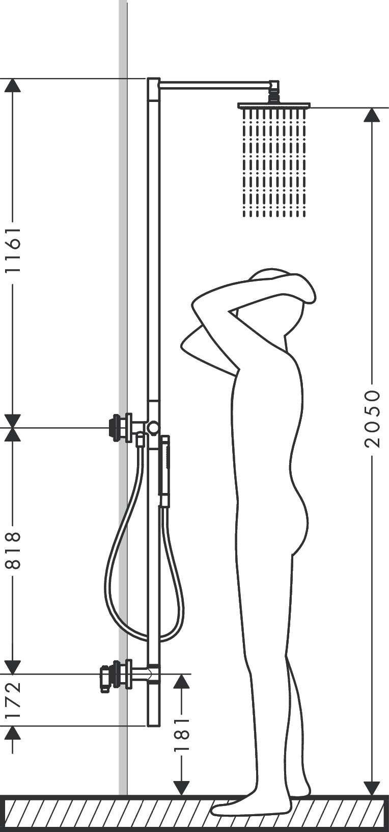 Axor Душова колона AXOR Starck Nature з верхнім душем 240 1jet, колір Brushed Black Chrome (чорний хром) (12670340)складається з: душової стійки, верхнього душу, ручного душу, душового шлангу, змішувача для душу,розмір душової лійки: 240 мм,верхній душ 240 1jet,тип розпилення: PowderRain, ручний душ: Rain, Mono,витрата ручного душу при 3 барах: 13,2 л/хв,максимальна витрата при 1 бар: 7,5 л/хв, при 3 барах: 13,2 л/хв,макс. робочий тиск: 10 бар,виходи, керовані за допомогою поворотної ручки,підходить для безперервних проточних водонагрівачів,монтаж: настінний,приєднувальний розмір: DN15,2 функції,проста дренажна система для видалення води (знімні зворотні клапани),у разі заморозків виріб необхідно повністю розібрати, усі компоненти звільнити від води та зберігати в сухому місці,водопровідне підключення виробу має бути доступним.