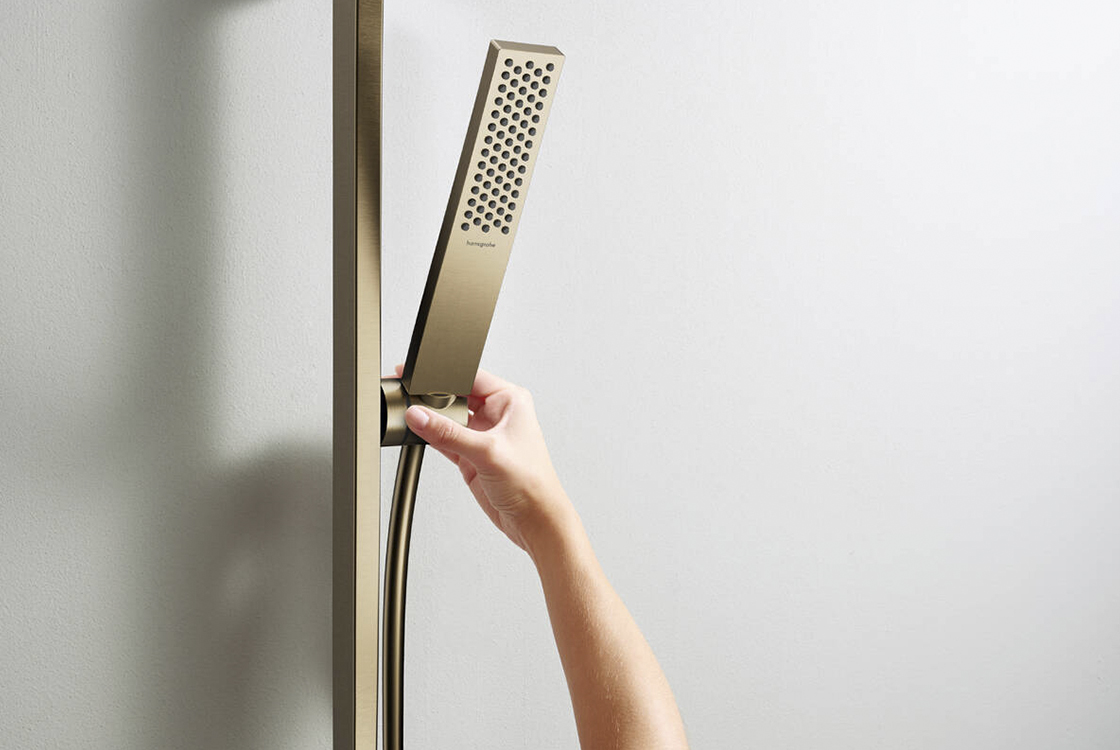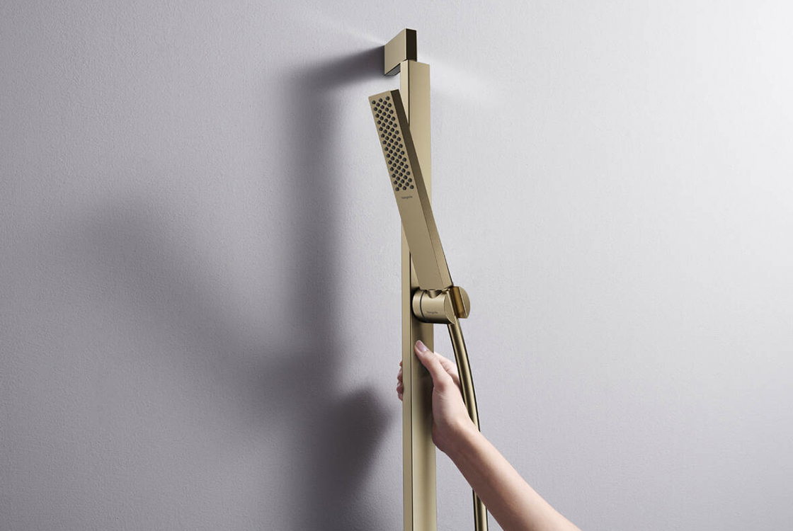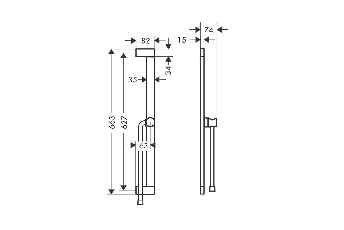 HANSGROHE складається з: душової штанги, тримача, душового шланга,поворотна душова штанга,поворотний з'єднувач запобігає заплутуванню шланга,довжина труби: 663 мм,металевий тримач для ручного душу для правого та лівого монтажу,тримач ручного душу з механізмом блокування,повзунок плавно регулюється,настінні опори з пластику.