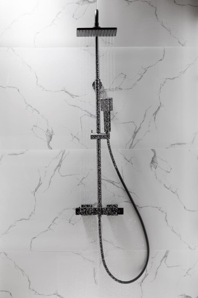 Дизайн всього виробу послідовний - квадратний диск верхнього душу ідеально поєднується з кубічною формою термостатичного змішувача. Важливо, що форма ручок – це не тільки зовнішній вигляд, це ще й ергономічність: ми впевнені, що вона не вислизне з мокрих рук. Вбудований перемикач душу обладнано обмежувачем для комфортного використання вибраного режиму - ручний душ або верхній душ.