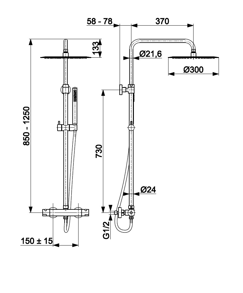 - регульована по висоті лійка ручного душу,