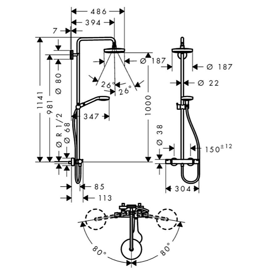 Відгуки про "Душова система Croma Select S 180 2jet Showerpipe EcoSmart з термостатом: 9 л/хв, білий/хромований (27254400)"