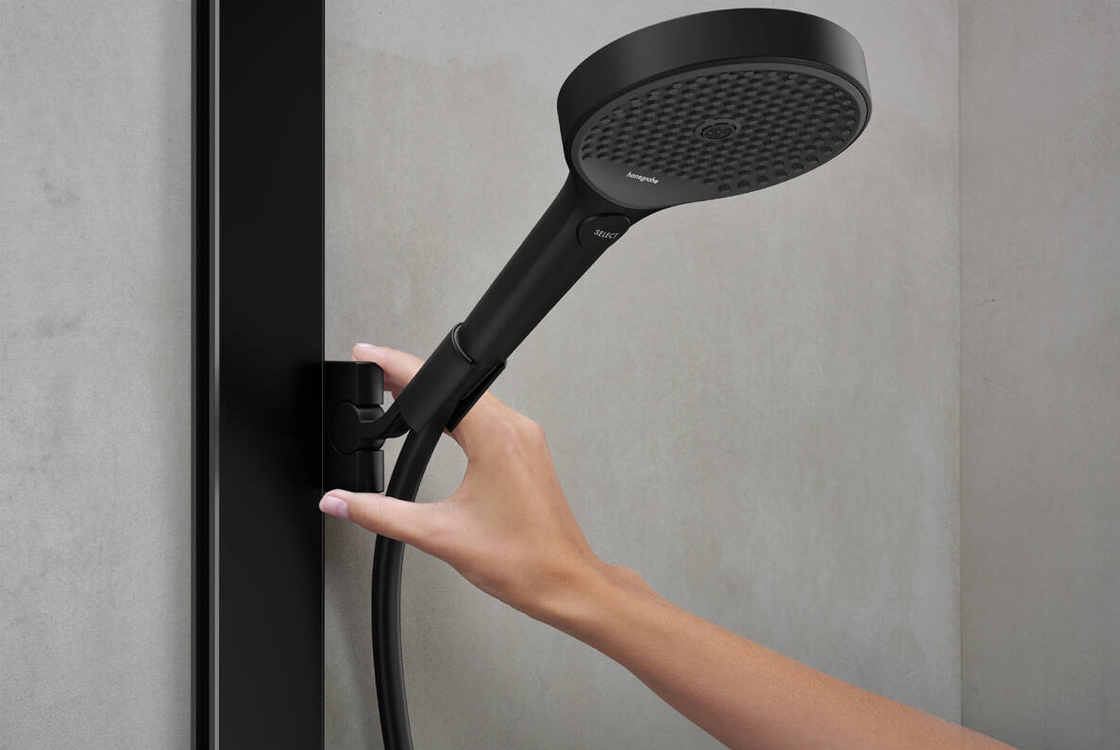 HANSGROHE складається з: верхнього душу, ручного душу, душового термостата, душового шланга, повзунка, душової штанги,2 функції,верхній душ Rainfinity 360 1jet (розмір душової лійки: 360 мм, тип розпилення: PowderRain, регулюється кут нахилу завдяки кульовомушарніру),тримач для ручного душу, регулюється на 90°, повертається вліво і вправо, вгору і вниз,поверхня розпилювального диска: графіт,поверхня полиці: анодований алюміній,тип розпилення ручного душу: PowderRain, Intense PowderRain, MonoRain,максимальна витрата при 3 барах: 15,9 л/хв,витрата ручного душу при 3 барах: 12,9 л/хв,макс. робочий тиск: 10 бар,ширина планки: 61 мм,термостат ShowerTablet 350,безпечна зупинка при 40°C,регульоване обмеження гарячої води,виходи, керовані за допомогою поворотної ручки,підходить для безперервних проточних водонагрівачів,приєднувальний розмір DN15,з'єднувальна різьба G ½,міжцентрова відстань 150 ± 12 мм,іскробезпечний проти зворотного потоку,довжина труби: 1066 мм.