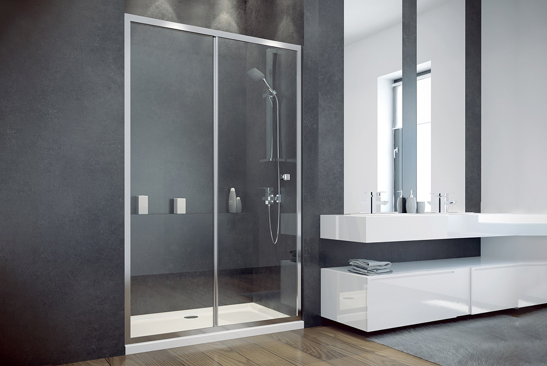 безпечне загартоване скло 6 мм,глянцевий хромований профіль і кронштейн,двері розсувні,подвійні роли високої якості,безпроблемне та тихе ковзання дверей,універсальна модель: праве/ліве кріплення.
