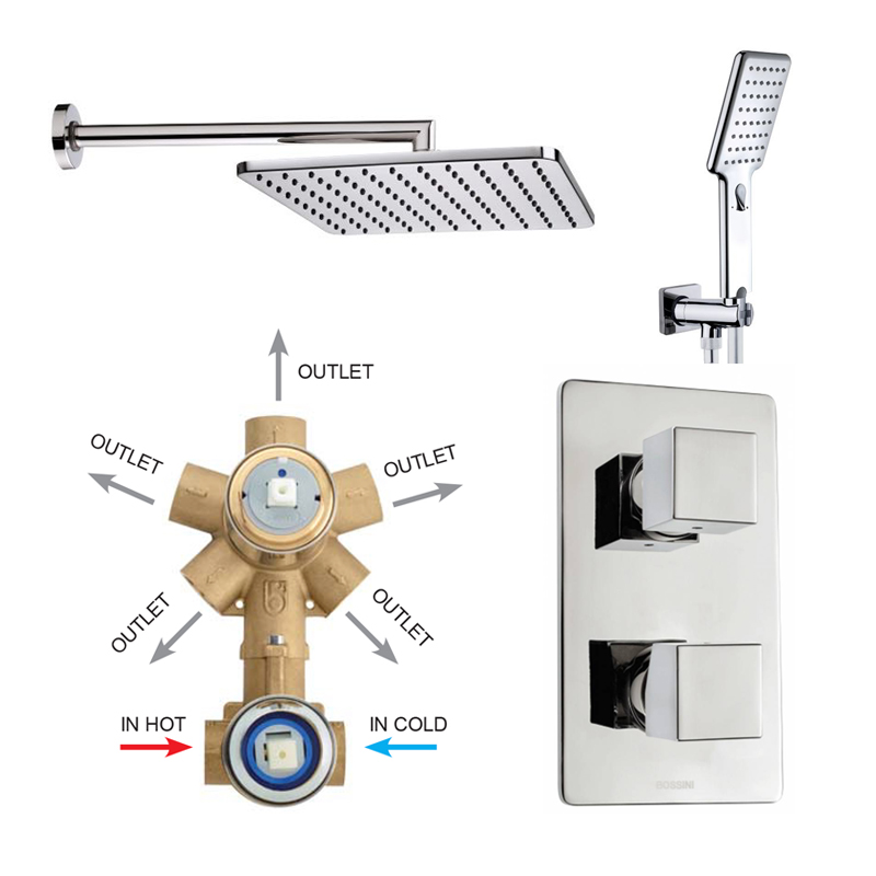 - універсальна вбудована частина одноважільного змішувача для душу Bossini, з дивертером на 2-5 виходів (Z00130000000005)