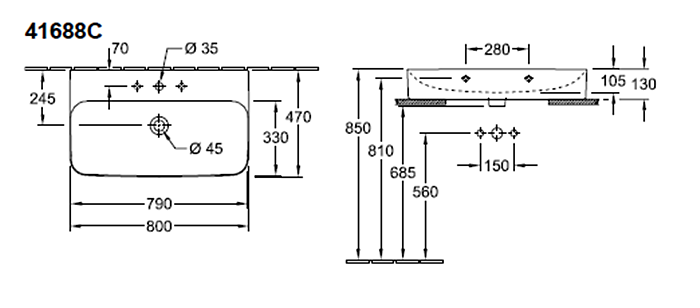Відгуки про "FINION Умивальник меблевий 800x470 мм прямокутний з прихованим переливом ViFlow (41688CR1)"