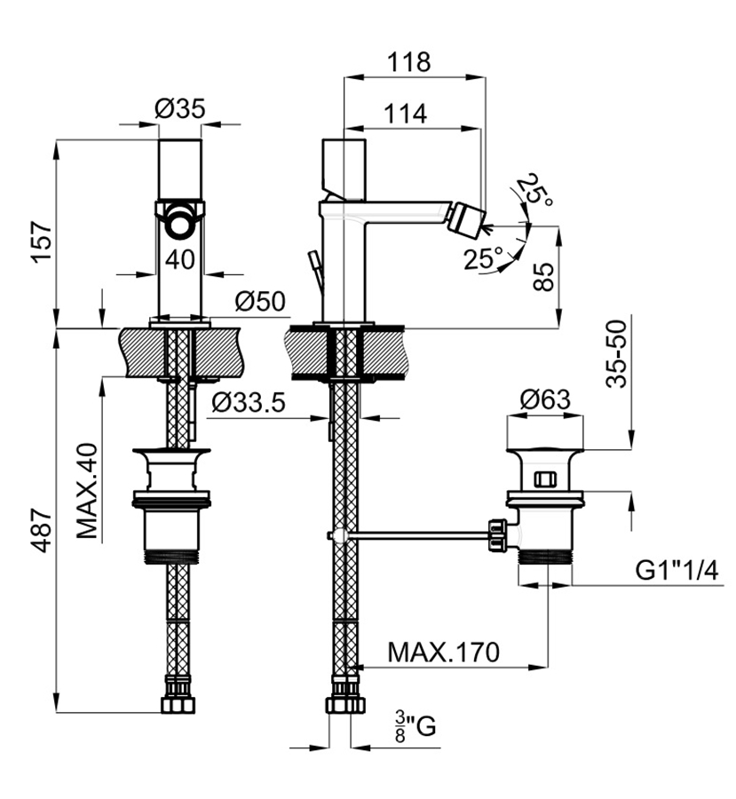 FORMA Змішувач для біде хромований: автоматичний зливний клапан / аератор“plus” / картридж 25мм / підключення 3/8" (100143705)