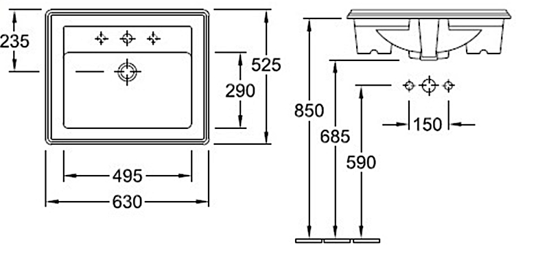 HOMMAGE Умивальник 630x525 мм вбудований на 3 отвори (7102A1R1) Ceramic Plus
