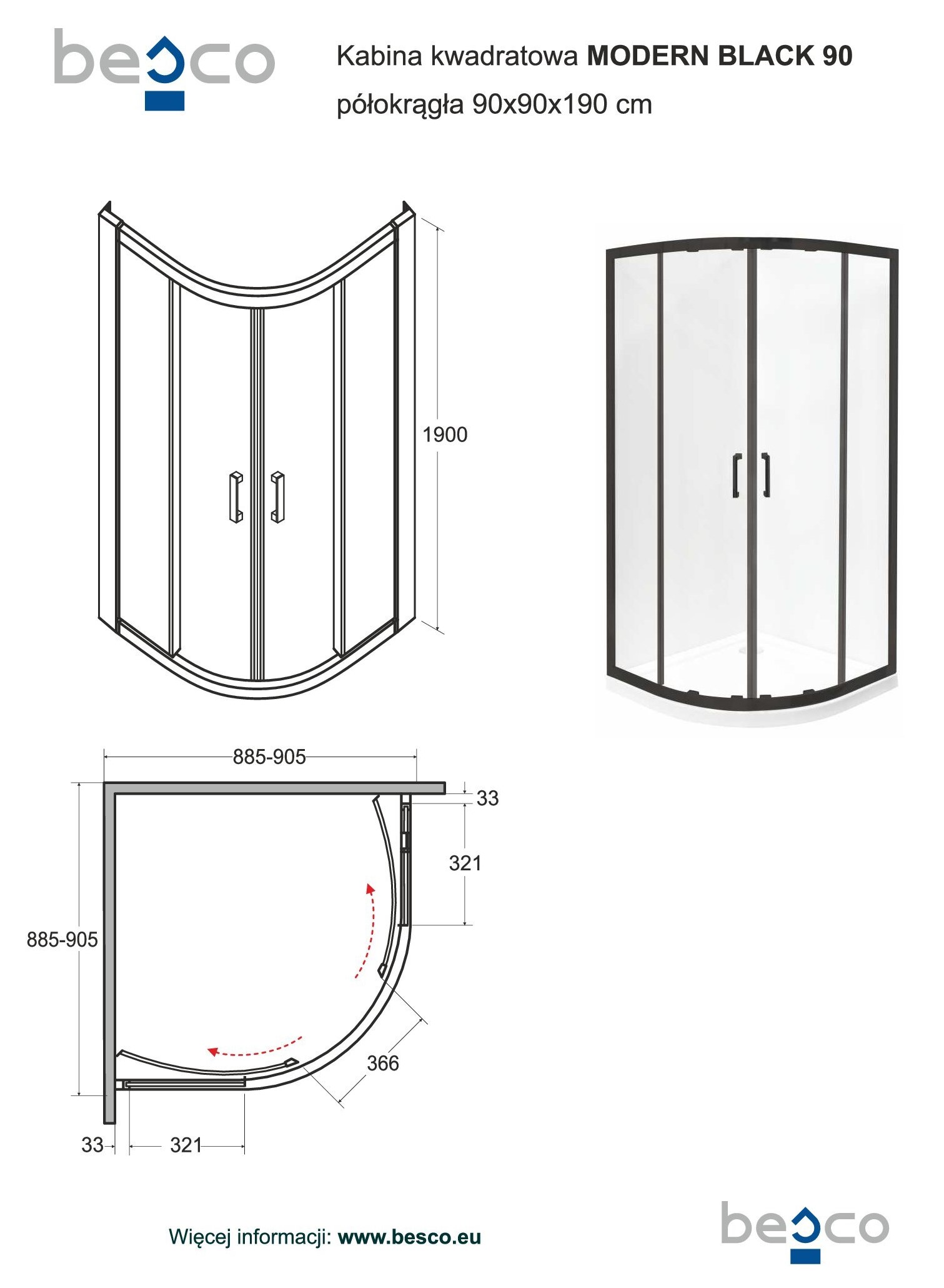 Відгуки про "Кабіна півкругла MODERN 90x90x190 скло прозоре, профіль чорний мат"
