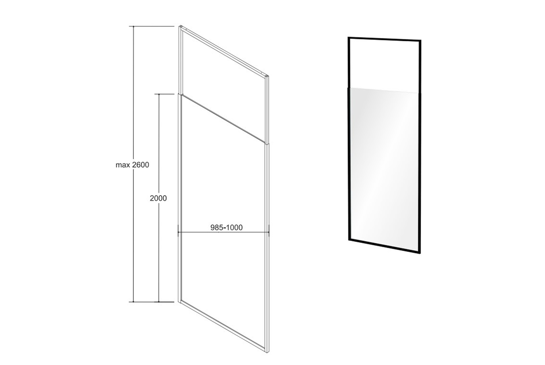 Кабіна walk in ICON 100x200 скло прозоре, профіль чорний мат