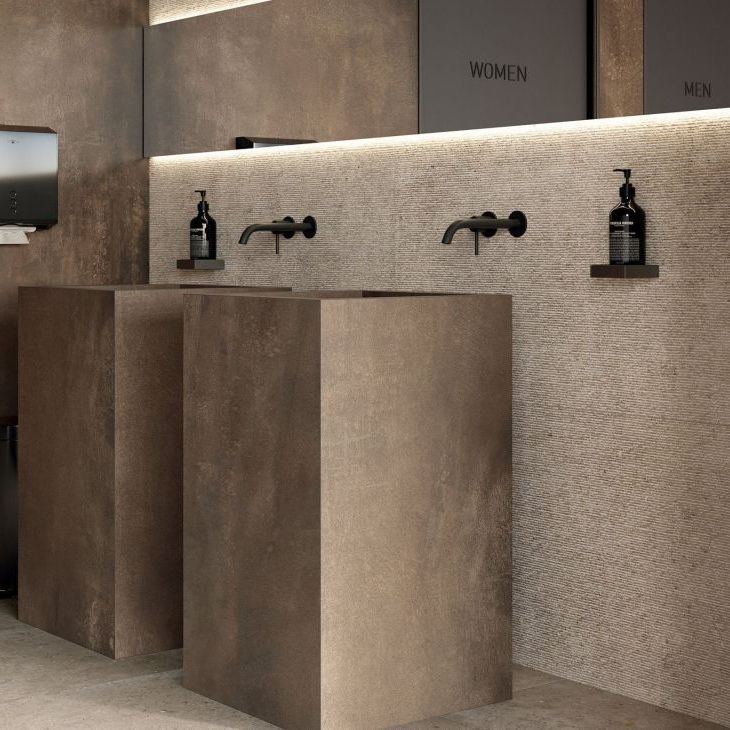Колекції ABK підлогової та настінної плитки, а також великі узгоджені модульні плити створюють відчуття безперервності між підлогою та стінами, а також між внутрішніми та зовнішніми просторами у житлових та торгових приміщеннях, таких як велнес, бізнес, Ho.Re.Ca та харчова промисловість.