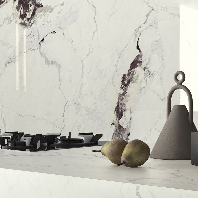Керамограніт Ariostea Ultra Marmi пропонує дизайнерам додаткову можливість використання продукту зі справжньою керамічною основою, яка, завдяки зменшеній ширині на 6 мм, залишається маневреної завдяки простій людській силі. Може бути, що більш важливо, це додає унікальності величної висоті цих матеріалів: стандартний розмір - 150 см. Завдяки цьому продукт вигідно відрізняється від інших продукти на ринку і не має собі рівних з точки зору його безшовного застосування на меблях, підлогах і стінах.