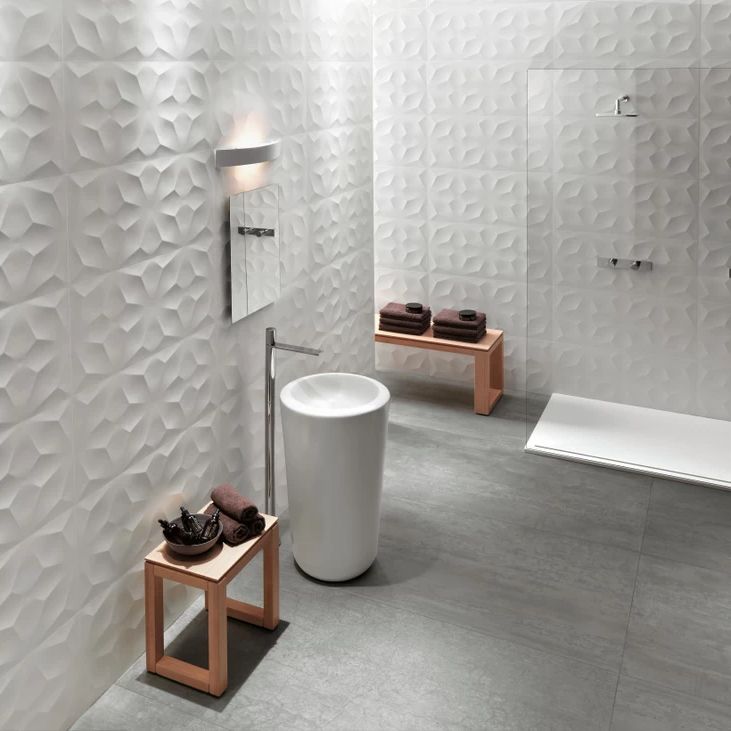 Багата гама тривимірних покриттів для надання стін елегантної та стильної багатогранності. Колекція 3D Wall Design прикрашає просто та вишукано будь-який тип інтер'єру. На її плитках з білої глини рельєфно виступають різноманітні декоративні мотиви, і саме вони під впливом освітлення народжують на стінах чарівну гру світла і тіні. Яскраві скульптурні ефекти плитки можуть стати стильною та функціональною окрасою стін у велнес-просторах, СПА-салонах, готелях, кафе, ресторанах, магазинах.
