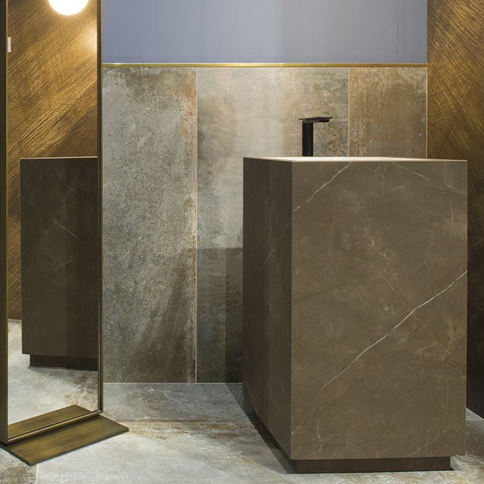В основі колекції MAGNETO лежить керамограніт з ефектом бетону, виконаний у металевому стилі з оздобленням під золото, іржу, кортен, арктику, срібло та вуглець.