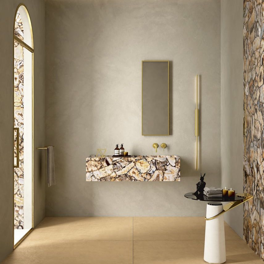 Натхненні принципами кольоротерапії, нові поверхні пропонують м'які та універсальні відтінки, які набувають естетичної цінності у поєднанні з візуальними та тактильними якостями мармуру, каменів, агатів та керамограніту Fiandre.