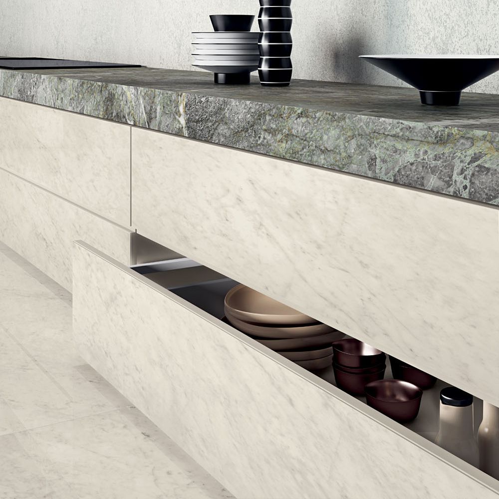 StarLight – колекція ламінованого керамограніту Kerlite 3plus, яка поєднує в собі елегантність та розкіш, стриманість та помпезність. Найскладніша декоративна технологія піднімає реалістичність відтворення на високий рівень: дуже висока графічна чіткість, увага до деталей мінералів, інтенсивність кольорів викликають подив відчуттям справжності, яке вони передають.