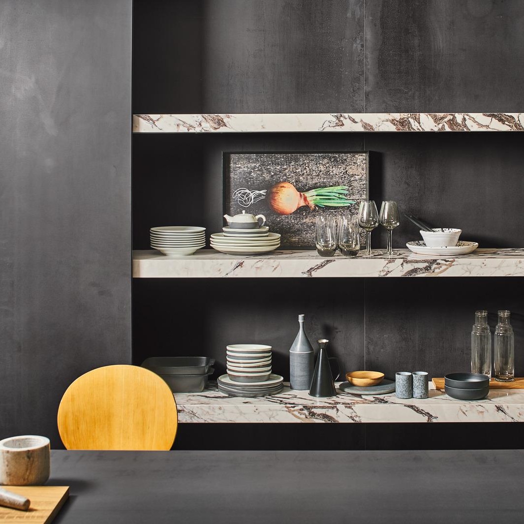 Керамограніт Grande Metal Look - Мінеральна чарівність металів трьох кольорів із вражаючою райдужною поверхнею, підкреслена великими плитами, що пропонують ще більше безшовних дизайнерських можливостей. Ідеальні умови для вільного створення композицій нескінченних форм та чарівних рішень для меблювання, включаючи столи та кухонні стільниці.