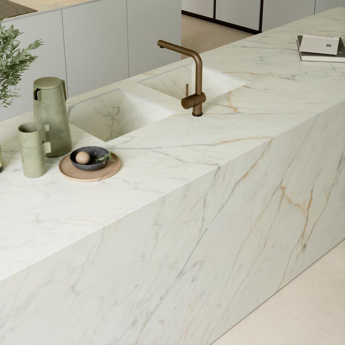 Оценка: 0 (0 голосов) Особливості керамогранітної плити для стільниць Marazzi Grande Marble Look Golden White Satin W/Mesh 162х324 12 мм (M34J)