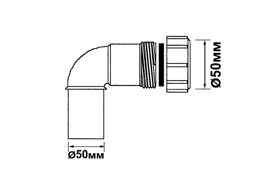 Коліно 90° з гайкою d50, 50C-WH