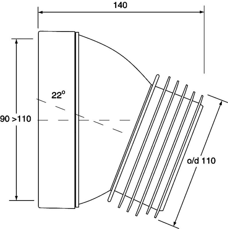 Коліно для унітазу під кутом 22 з ущільнювачем L-125 mm HC39-22