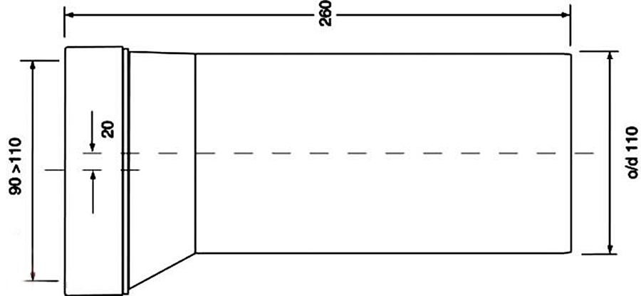 Коліно-підключення до WC довге 20 мм без ущільнення HC36