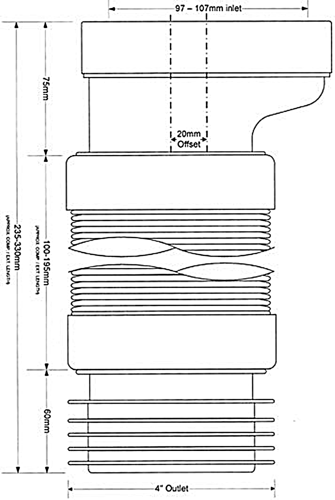 Відгуки про "Коліно-підключення еластичне до WC зміщене на 20 мм з ущільненням L-110 мм WC-CON4F"